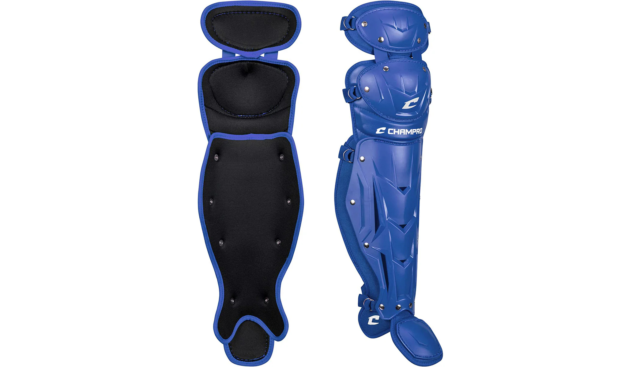 Built to last and designed with comfort and protection in mind, the CHAMPRO Optimus MVP 14.5″ Double Knee Leg Guards are made to improve your catcher’s game! These leg guards combine ease of movement with protective strength with their high-performance polyethylene constructed shin plates that are both flexible and durable without added weight. Their protective design includes a cantilever-shaped lining system that spreads out the shot of impact, minimizing the force transferred to the catcher’s shins. If a stray ball hits your catcher’s knee, there’s no need to worry with its double knee protection. The double knee protection features an extra knee cap that covers part of the upper leg, providing extended protection. These leg guards are not only incredibly durable, but also comfortable. Air is able to flow through the built-in ventilation holes to keep your catcher cool and prevent heat buildup under the summer sun. They are priced per one pair of leg guards.