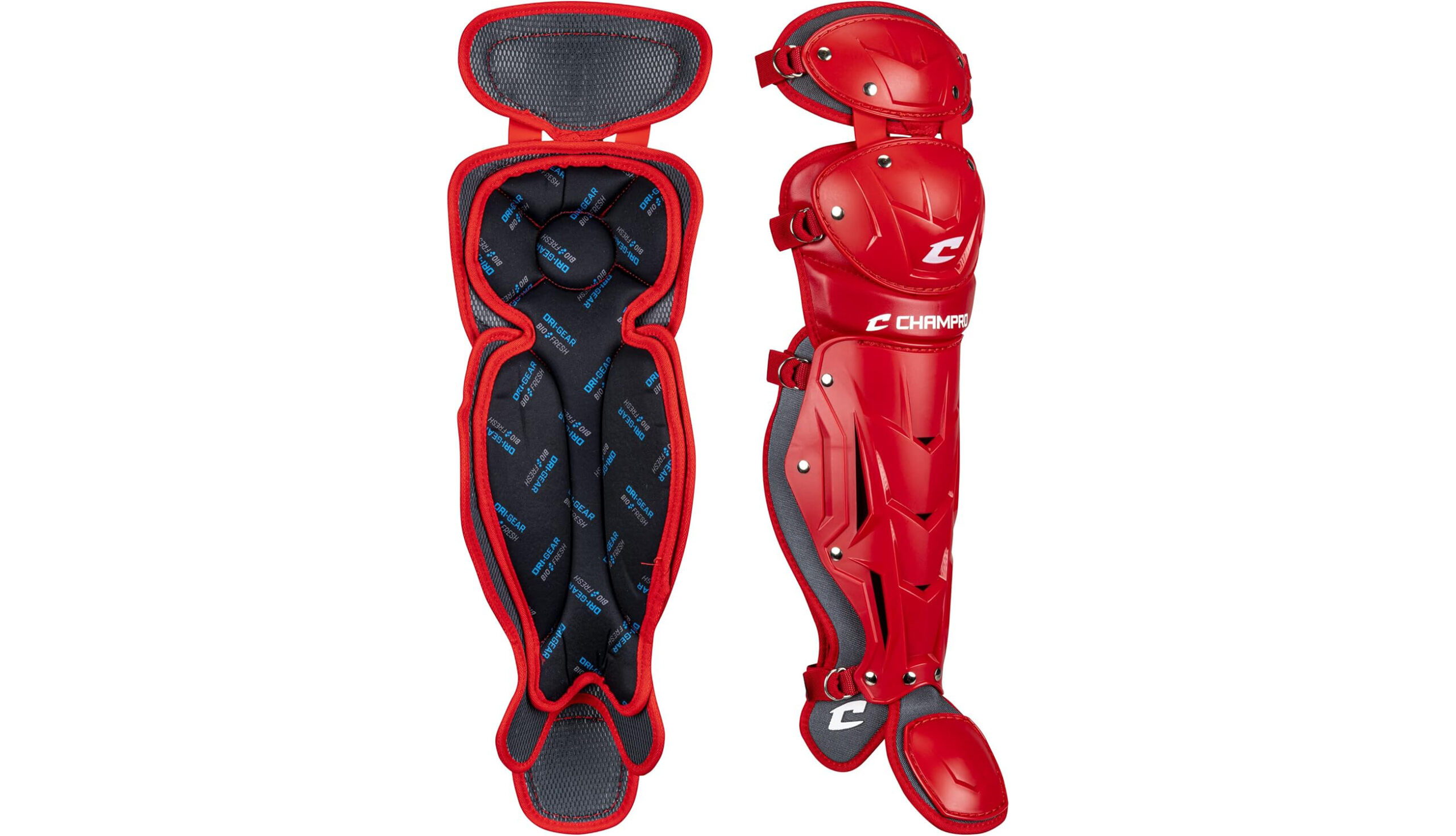 Built to last and designed with comfort and protection in mind, the CHAMPRO Optimus Pro 14.5″ Leg Guards are made to improve your catcher’s game! These leg guards combine ease of movement with protective strength with their high-performance polyethylene constructed shin plates that are both flexible and durable without adding weight. Their protective design includes a cantilever-shaped lining system that spreads out the shot of impact, minimizing the force transferred to the catcher’s shins. If a stray ball hits your catcher’s knee, there’s no need to worry with its triple knee coverage. The triple knee coverage covers part of the upper leg and its wings extend over the calf and ankle, protecting a large surface area. These leg guards are not only incredibly durable, but also extremely comfortable. Air is able to flow through the built-in ventilation holes to keep your catcher cool and prevent heat buildup under the summer sun, while a DRI-GEAR® moisture-wicking liner that’s contour-molded and adjustable wicks away moisture and helps keep catchers comfortable and dry on hot days. Finally, these leg guards have BIO-FRESH® antimicrobial technology in them that helps prevent germs and odors. They are priced per one pair of leg guards.