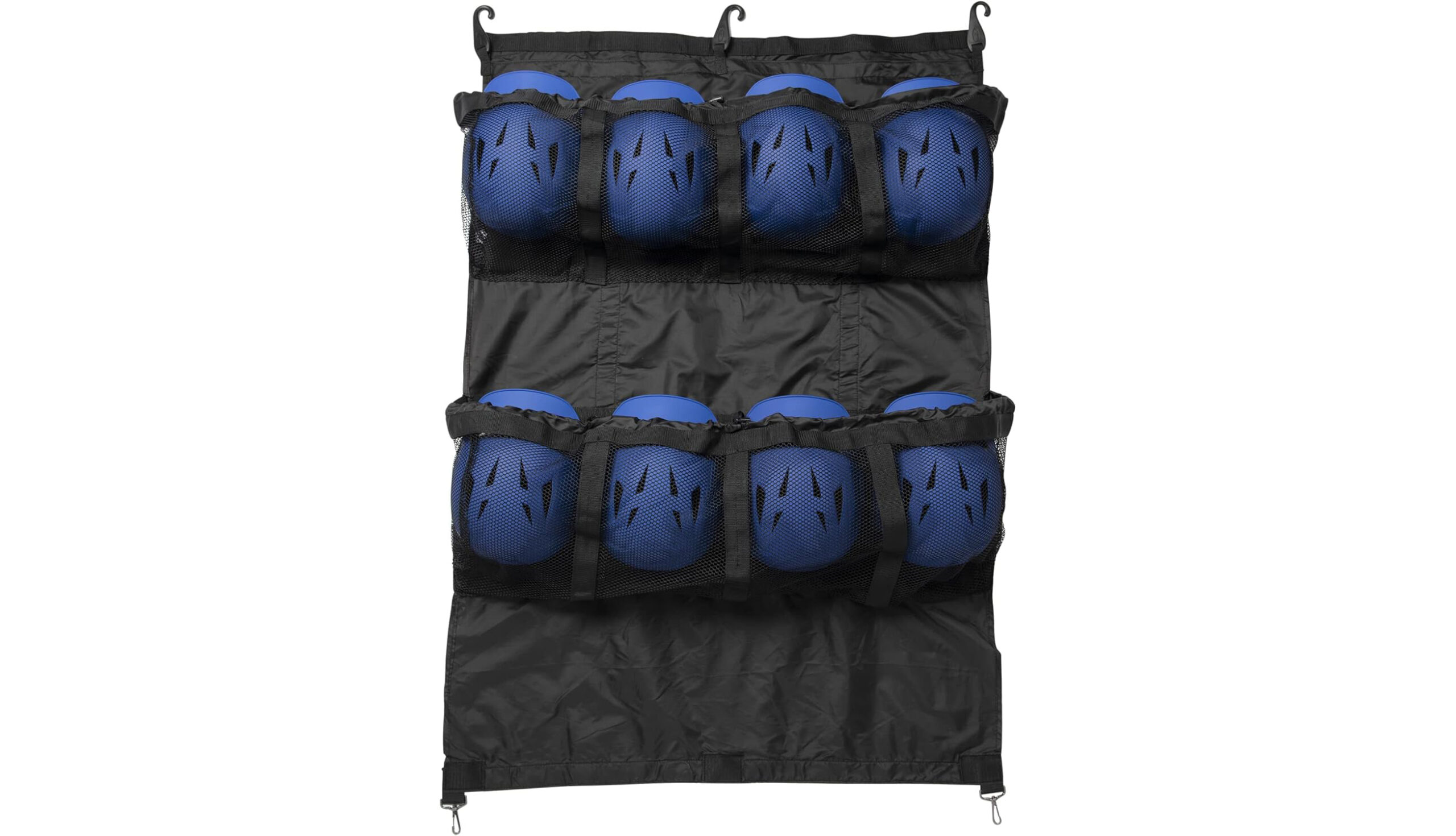Transport, hang, and protect your helmets with style and ease with the CHAMPRO 8 Helmet Hanging Helmet Bag! This helmet bag is ideal for game day as much as it is for storing and transporting helmets. During game play, it can hang on a fence for easy access to helmets for players and coaches, and for transporting and storage, the helmet bag easily rolls up into a carry bag with an adjustable handle for convenience and protection against scratching or damage to the helmets. Its mesh pockets hold up to 8 helmets with or without face masks, and it has parachute buckles for easy and secure closures. It’s made with a durable 150D nylon fabric and has a web strap handle on it. This helmet bag is designed to be used for baseball or softball.