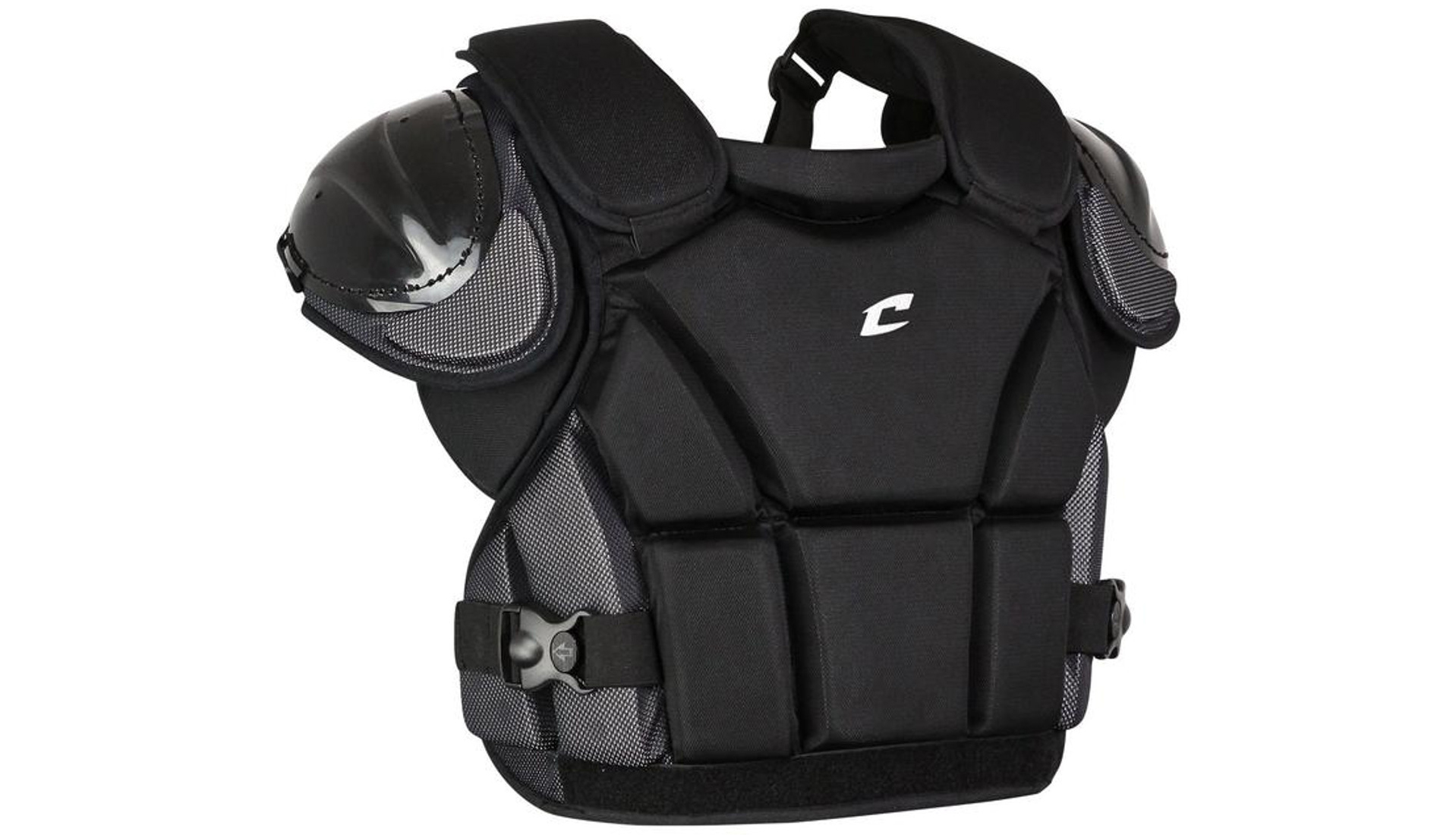 Your umpire’s chest deserves only the best protection, and that’s exactly what they’ll get with the CHAMPRO Pro-Plus Armor Chest Protector! This chest protector’s exterior is made with a 3mm polyethylene armor that’s contour molded for a perfect fit, as well as able to disperse shock expertly in case of a stray baseball. Its ergonomic armor system contours to the body and allows for excellent range of motion, so that your umpire can be both comfortable and play their best at the same time. Speaking of comfort, this chest protector’s cushioned liner is covered with DRI-GEAR® moisture-wicking mesh to keep your umpire dry and comfortable all game long. The Bio-Fresh® antimicrobial pad treatment provides lasting freshness against deterioration from mold, mildew stains, and bacterial odors, which keeps odors at bay and leaves your umpire feeling fresh all game long. This chest protector features a unique cantilever system that suspends the chest protector away from the body for even more comfort, ventilation, and protection. In short, this chest protector is the perfect balance of high performance, durability, and comfort. It’s got a 5-way adjustable harness with dual quick release clips for easy on and off, as well as full shoulder coverage for extra protection. Comes in adult medium, adult large, and adult extra large sizes (see below for sizing).