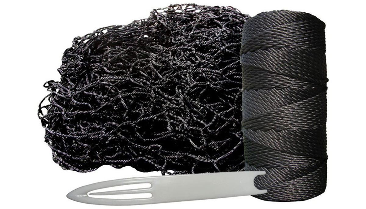 If you’ve got a hole in your batting tunnel net, or if you’re looking for general repairs on it, instead of buying a whole new net, you can simply purchase the Deluxe Netting Repair Kit to fix your current battle tunnel net and save you and your team lots of money! This netting repair kit is great for repairing holes in your netting and for lacing netting to the framework of your batting tunnel system. It comes with not only the tools needed to help repair it, but also with an 8 x 8 foot section of black #36 gauge, weather treated netting that’s injected with weather and UV inhibitors that are embedded during extrusion that create superior weather protection, UV resistance, and waterproofing, so that your net is safe from players, wear and tear, and the elements. It also comes with approximately 300 feet of #60 gauge twine, our strongest twine, to help sew the new netting into place or to lace the netting to the framework for extra durability.