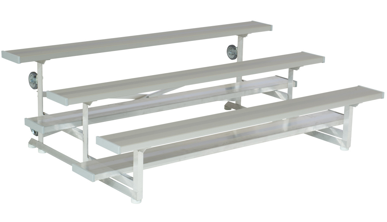 Tip N’ Roll Bleachers are high quality bleachers that are highly portable, lightweight, and excellent for either indoor or outdoor temporary seating. These bleachers are able to be easily tipped on their side that have non-marring casters for storage and transport, meaning you can easily move them without having to worry about damage to your flooring. In fact, we know how expensive flooring can be, so to be extra sure it won’t be damaged, we include rubber foot pads with your purchase. Made with a lightweight aluminum construction and a 204R1 anodized finish, these bleachers are easy to take on the go while staying durable and lasting you many years to come. They are fully welded to eliminate the liability of bolts working loose, as well as fitted aluminum channel end caps on all open ends eliminates sharp edges, because safety is important, whether it’s your fans or your players. Speaking of safety, the 10″ wide aluminum, anodized 6063-T6 alloy seat planks and mill finished 6063-T6 alloy foot planks are ribbed to create a non-slip surface, preventing falls or injuries. All rows of these bleachers have single foot planks and do not feature risers. They also do not exceed 30″, therefore not requiring a guard rail system and meeting IBC safety codes. They seat 15 (7 foot 6 inch size), 20 (15 foot size) 42 (21 foot size), and 54 people (27 foot size), and with their aluminum constructed, 6061-T6 alloy angled, fully welded, mill-finished understructure, these bleachers are sure to be durable and last season after season. Plus, you’ll have peace of mind when you purchase these bleachers, as they come with a 5 year manufacturer warranty against material defects and workmanship. The manufacturer recommends anchoring all bleachers, and they ship knocked down, so site assembly is required.