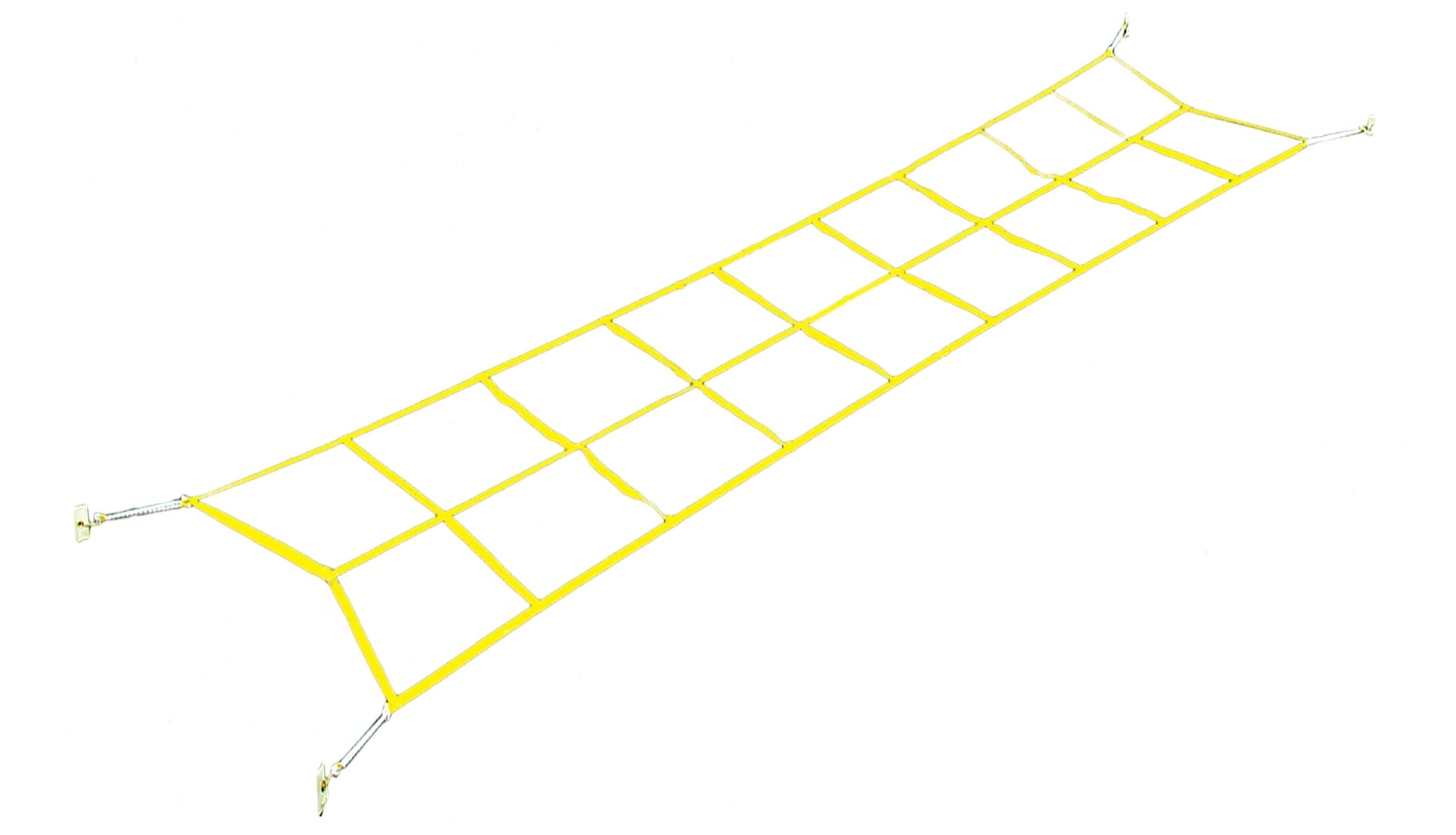 The Fisher Adjustable Agility Master Replacement ropes are ropes that are used to replace the ropes on the Fisher Adjustable Agility Master (see above), which helps players train to increase their speed, agility, and quickness on the field. These ropes will easily attach to the shatter proof plastic frame without bolts, nuts, or screws, and are able to be adjusted from ground level to 10 inches high for varied training exercises with ease. These ropes are 20 feet long and securely attach to the trainer with hooks. The ropes are a bright yellow color that is easily visible for players to see during practice. Frame not included.