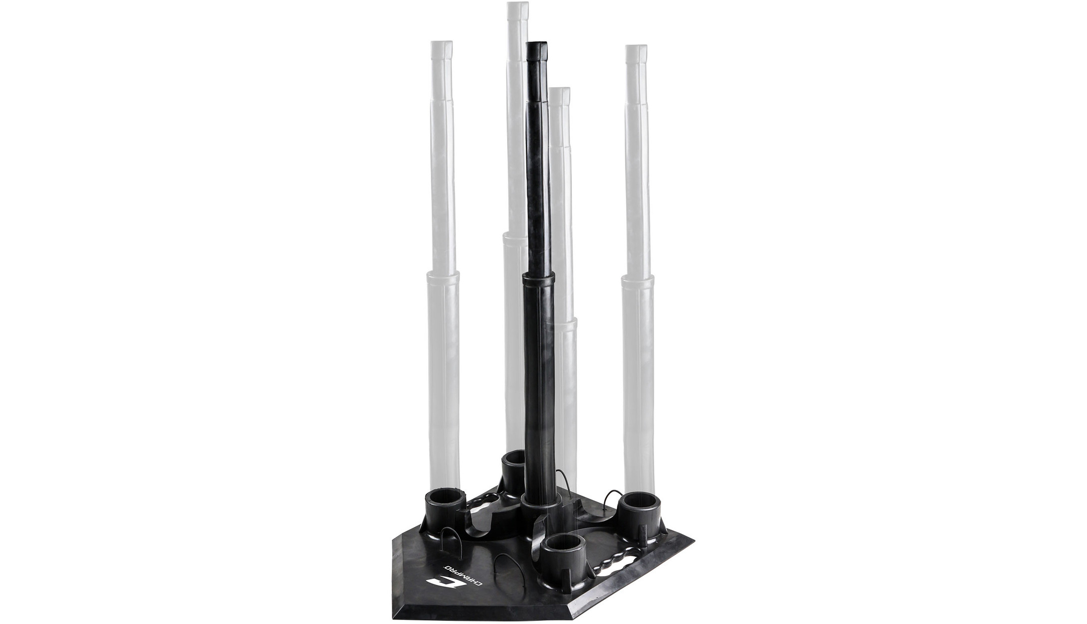 For those looking to build their proper hitting fundamentals, the CHAMPRO 3 Position Batting Tee is a must have training aid! Players of all ages can use it to improve their power and hitting approach at the plate while training for most types of pitches. The rubber plate base has 3 different hitting positions that hitters can alternate between in order to practice making solid contact with inside pitches, outside pitches, and center pitches. The hitting positions are not the only thing that’s adjustable on this batting tee, though. It features a polyethylene tube that slides to adjust the height from 21″ to 36″, giving it the ability to adapt to each player to let them practice hitting high and low pitches, and the tube’s push-pin locking system maintains the poles’ positioning during training drills, so that you don’t have to worry about pieces coming apart during practice. The flexible rubber top of the batting tee is extremely durable and built to withstand intense workouts, so that it can take a beating from players working on their hitting technique. Set up, take down, and transportation are a breeze with this batting tee. To assemble it, simply pop the tubes into one of the position holes to start training and to disassemble, pop them off. When it’s time to pack up and leave, all you have to do is snap the tubes onto the home plate base, preventing any pieces from getting lost, and use the built-in handle for easy transport.