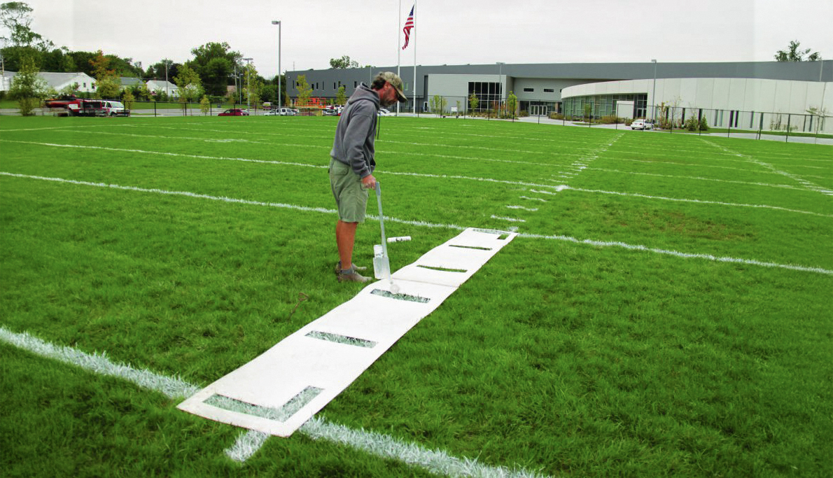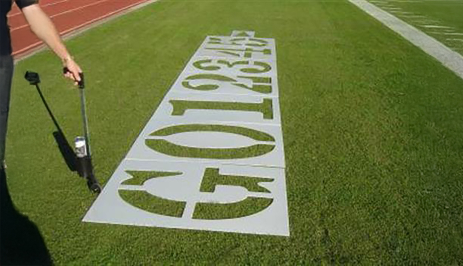 These are our most durable stencils, now specifically for football fields! They’re made with rugged, premium industrial-grade 1/8″ thick polyethylene, so that they will not break, warp, or crease, and their flexible design makes excess paint build up a thing of the past. You’ll be able to roll them up for an easy storage option, and the paint flakes off of the stencil, saving you from excess paint build up. They’re precision cut for crisp and accurate lines, so that you don’t have to worry about a wonky looking paint job. The kit includes one of each: G, numbers 0 through 5, and a directional arrow. The hash mark stencil is sold separately (see below). In case of any unlikely breaks or needed repairs, it comes with a 5 year limited warranty, giving you peace of mind.