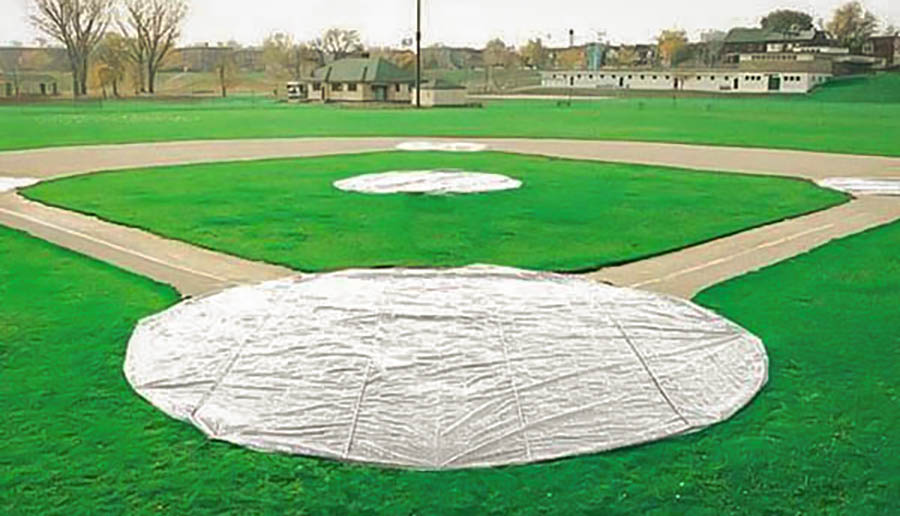 The same great tarp kit as the Poly Premium Base Cover Kit, now available for junior baseball as the Poly Junior Base Cover Kit! With this kit, you can eliminate rainouts and costly maintenance. These tarps are made with a premium polyethylene construction that’s completely waterproof from the middle of the tarp to the seams. They boast a UV stabilization to keep the sun from damaging both the tarp or the field, and are rot and cold crack resistant, giving them a long life expectancy so that they stay strong and ready for use for many years to come. The material is lightweight and easy to handle, making set up and take down easier, and they feature a double sewn, reinforced perimeter with brass grommets. In order to minimize heat build up and damage to the tarps or field, the tarps are silver on the bottom and white on the top. Plus, get even more bang for your buck with 2 FREE storage bags and 30 FREE stakes included with your purchase!