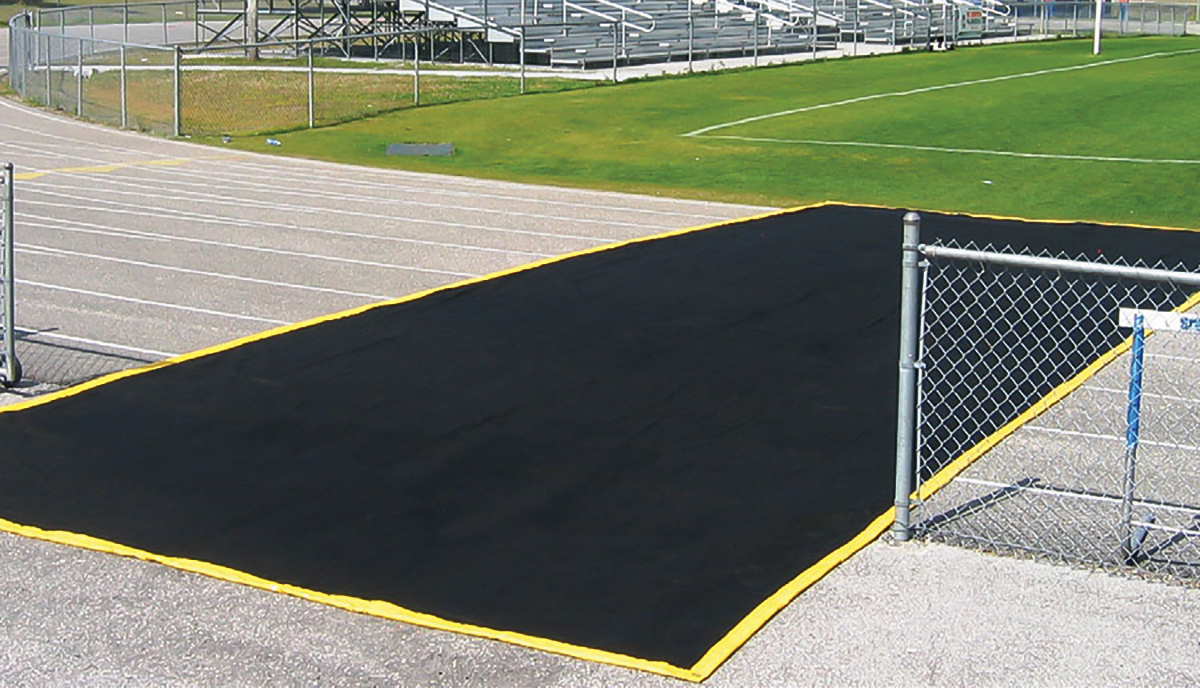 Make sure your track is protected and not damaged when teams, people, and vehicles need to cross over it to get to the field with the Cross-Over Zone® Weighted Sideline Track Protector! It works on all modern track surfaces by using its tough, geotextile fabric to resist and cushion cleats and tires. Its vinyl edging with a steel chain insert around the perimeter helps keeps the unit in place, and it’s virtually wind-proof without the need for stakes. Mold is no concern with this track protector, as rain easily drains through it. It’s also easy to install and remove, saving you valuable time.